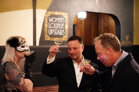 Fire breathing burlesque performers, big band jazz dancing, dazzling magic, in a Victorian mansion.